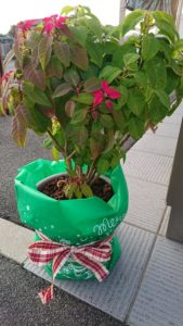 クリスマス 投稿日:2020年11月24日 |ブログ ヤマイチリース園芸部長のYです。 8月20日から短日処理していたポインセチア! やっとここまで色づきました。 今日から、受付カウンター横にデビューです。