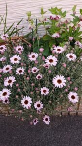 園芸部長のYです。ほんと、昼間は暖かいですよね~会社の花壇にローダンセマム、満開です。その後ろには、クリスマスローズも咲いてます