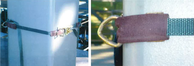 - 角柱、H柱等鋭利なコーナーの場合は、必ずスリーブリングで保護して下さい。