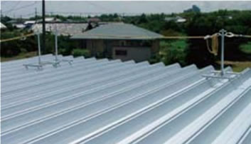 ⑧親綱を取付け、緊張器を用いて、概ね水平になるように緊張して完成。